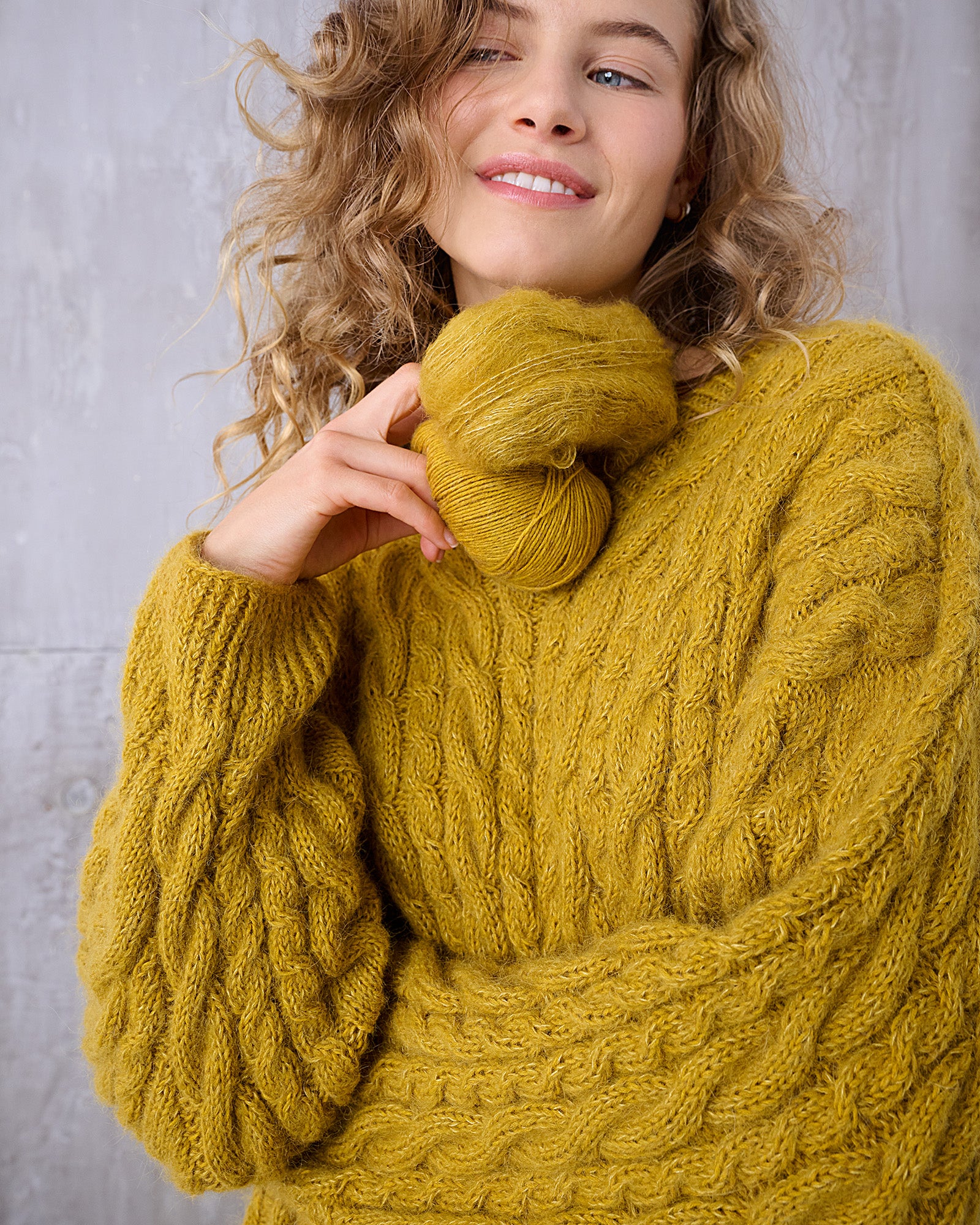 Noble net yarn structure made of cotton filled with merino/alpaca