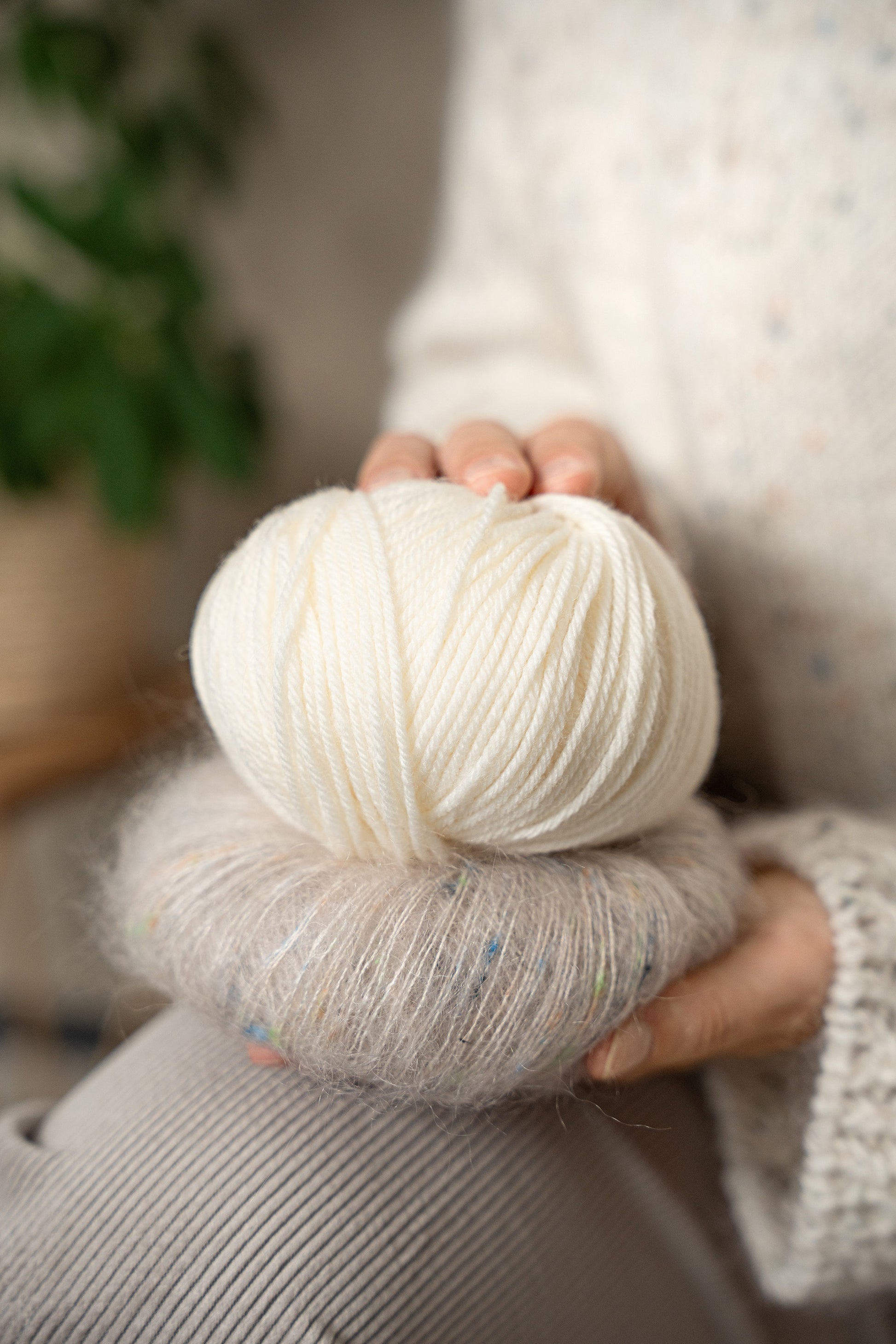 Feines Lace-Garn aus Superkid Mohair mit Seide und zarten Tweednoppen